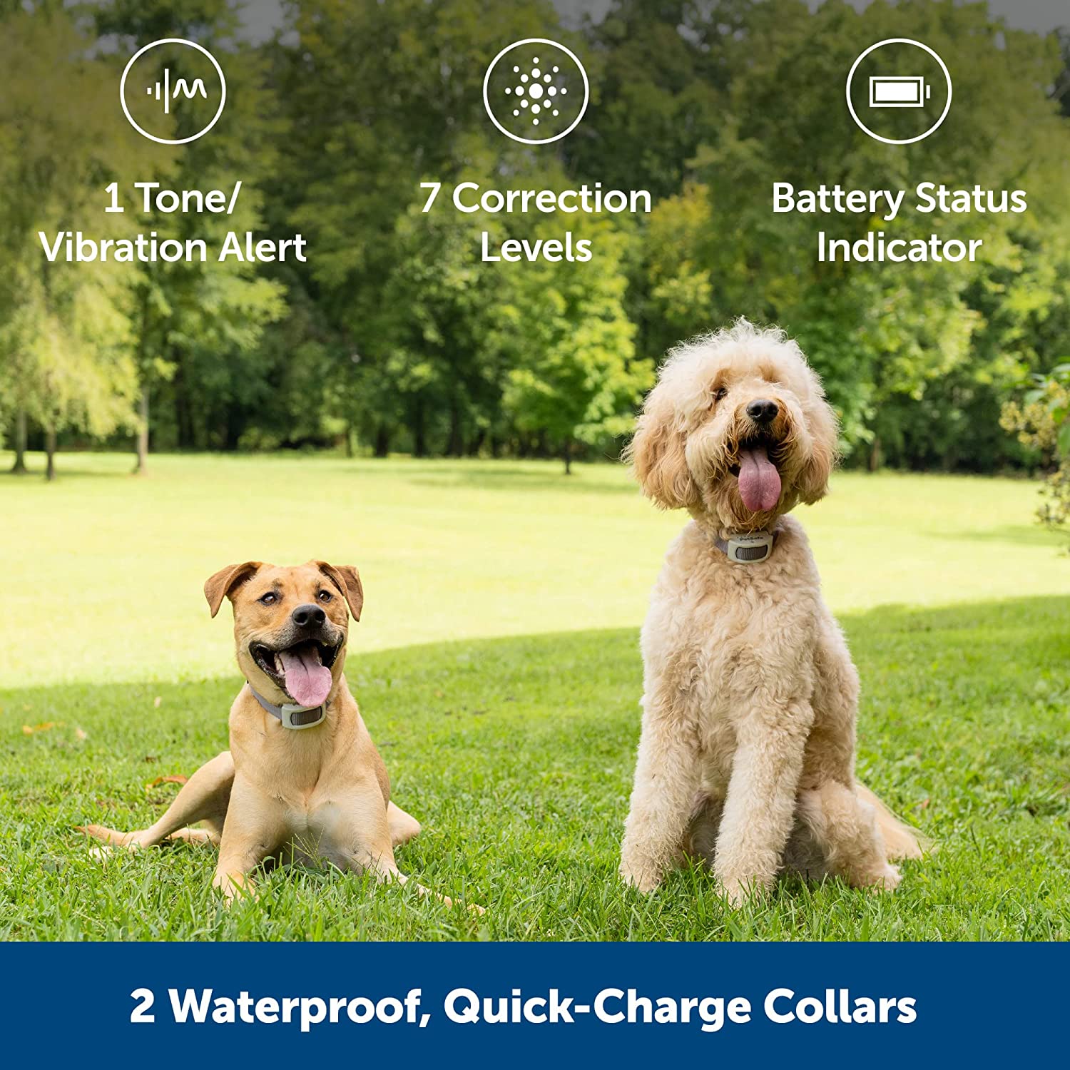 • INCLUDES 2 COLLARS: Comes with 2 collars for both dogs in your family; if you have more than 2 dogs you can purchase additional collars so all your pets can play safely in the backyard together